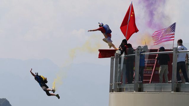[现场直播]10:40世界低空飞人站上廊桥一跃而下