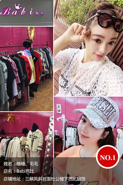 毛毛,已是2岁小孩的妈妈,新时代的辣妈,生了宝宝身材依然火辣,服饰搭配超前时尚,事业依旧蒸蒸日上。她拥有一家欧日韩风格的芭比服饰店,此店位于三峡风斜对面社工楼下。那么接下来就让我们见证辣妈布置的温馨复古高雅的服装店铺,如何坐稳时尚的宝座,怎样走“潮范”?