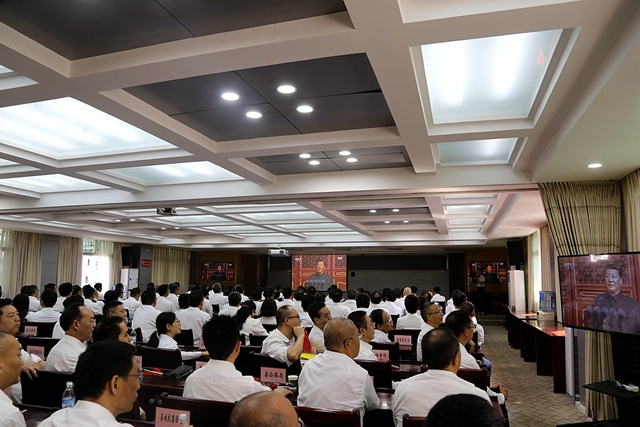 云阳网讯(记者 王彬彬)10月1日,庆祝中华人民共和国成立70周年大会在北京天安门广场隆重举行。我县组织干部职工在云阳分会场集中收看大会盛况,共同回顾中华人民共和国成立70周年来的伟大历程,见证激动人心的历史时刻。张学锋、覃昌德、赵勇、赖建彬、丁笙洺、罗启辉、刘晓云、李学义、王启海、杨志奇、曾郴、宋妮妮等县领导一同收看。