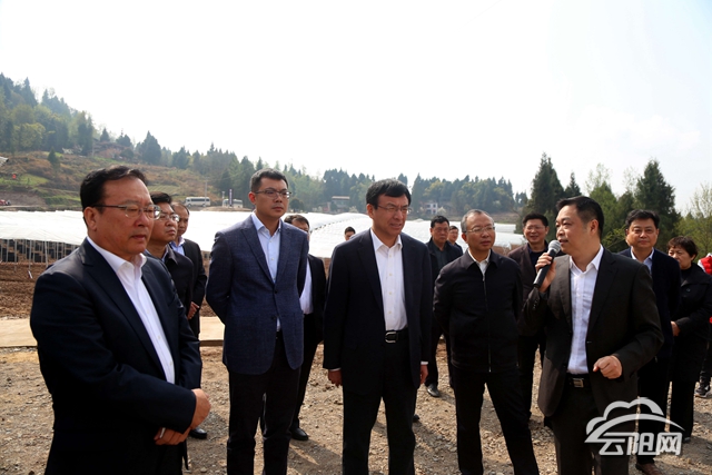 凤鸣镇马轩村威海·云阳现代农业产业示范园是东西部协作项目,该项目为农民专业合作社种植大户、家庭农场以及广大农民提供优良种苗,免费培训技术,带动小农户参与现代农业。考察团希望示范园要建立良好的利益联接机制,通过示范带动,让更多的群众受益。