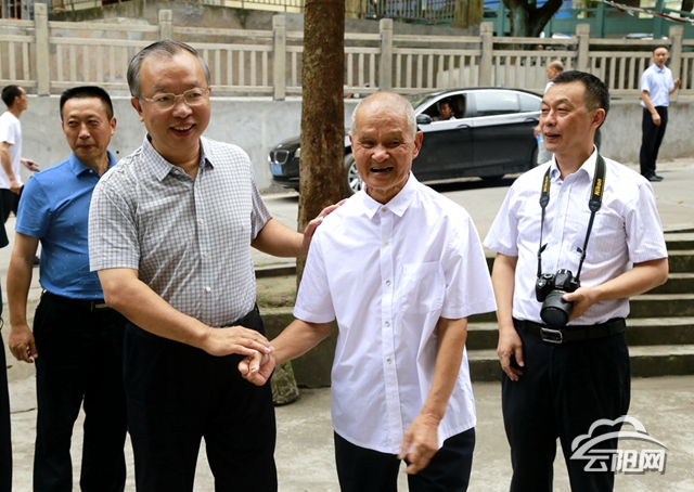 在1949年入伍的老兵谭正益家中,张学锋紧紧握着老人的手,与其促膝交谈,详细询问老人家的身体状况和生活情况,感谢他为军队和国防事业做出的贡献。看到老人今年虽已90岁,但精神依旧矍铄,老年生活也幸福美满,张学锋非常高兴,他说,当年,老战士投身革命,抛头颅、洒热血,为民族的解放立下了赫赫战功,党员干部要学习和继承老同志为国家、为民族赴汤蹈火、不怕牺牲的爱国主义精神,发扬革命传统,一心一意谋发展,同心同德创事业,为建设美好云阳而奋斗。