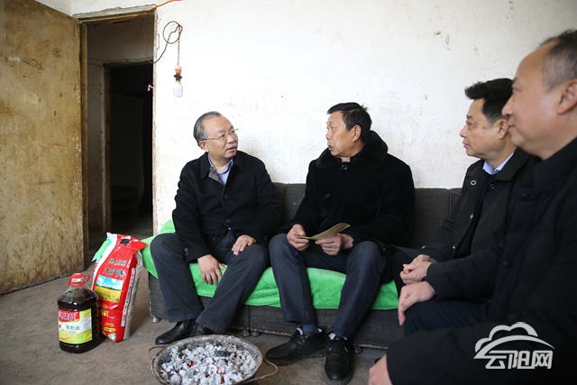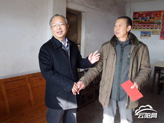冬日阳光普照云阳大地,空气里流动着阵阵暖意。带着对困难群众的牵挂,张学锋来到龙角镇栏坪村困难老党员张定平家,与他促膝交谈,送上新春问候。“生活有没有问题?孩子们回来过年不?”老张回答说,生活没问题,吃穿不愁!张学锋说,老党员过去为党和国家以及云阳发展作出了贡献,春节将至,各级党委、政府,各相关部门要高度关注特殊群体,要带着深厚的感情,把群众安危冷暖时刻放在心间;要给予生活困难群众更多关心关爱,要在生产、生活等方面为困难群众、党员提供更多方便,千方百计帮助解决实际困难。
