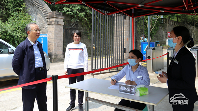 “今天来游览景区的游客有多少?景区是否采取了防疫措施?”在张飞庙景区门前,游客正在排队检测体温并登记入园。“五一”第一天,张飞庙景区游客猛增。张学锋详细了解景区目前运营状况、疫情防控和旅游安全工作,他说,随着节假日人流量的增加,疫情防控和旅游安全更不容忽视,要求各相关部门要高度重视节日期间旅游安全工作,加大执法力度,对重点景区、道路交通、食宿等进行严格检查,全面排查安全隐患;要严格落实疫情防控各项举措,做好疫情防控和景区安全有序开放工作。