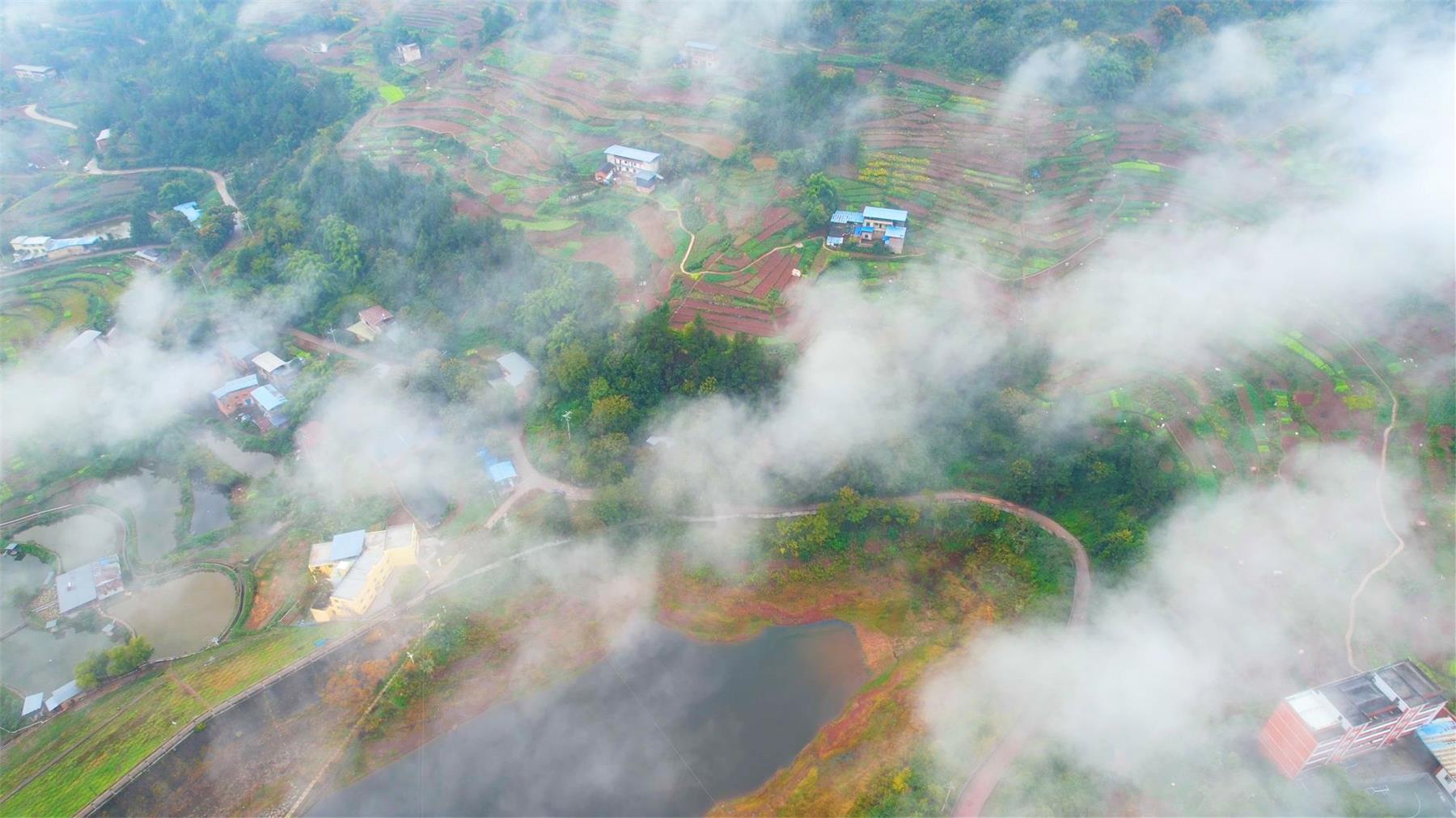 雨后初霁,云海翻涌。一场降雨过后,云阳县双江街道石云村,雨后出现云雾景观,只见雨后云漫乡村,层层山峦时隐时现,田园绿意盎然,远山、稻田、村庄共同构成了一幅秀美乡村画卷。(谭启云 摄)