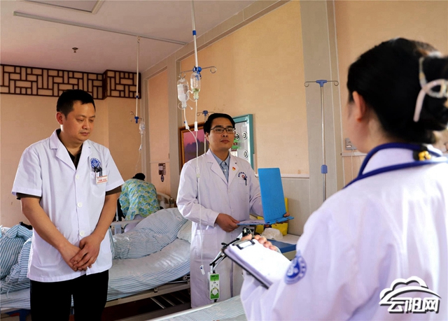 近日,记者走进县中医院老年病科的病区,县中医院副院长曾闯、老年病科主任丁雪峰、护士长向琴正带领着老年病科的医护团队查房。