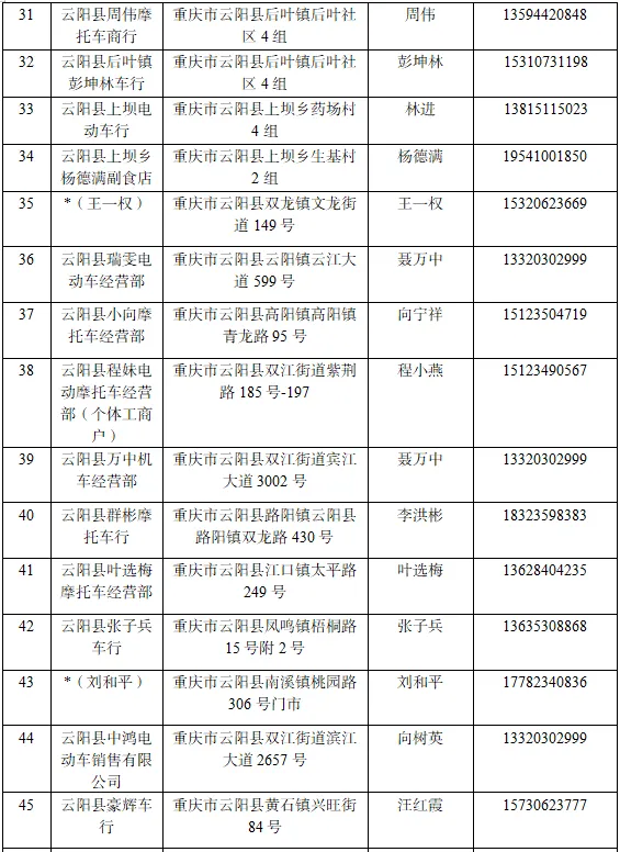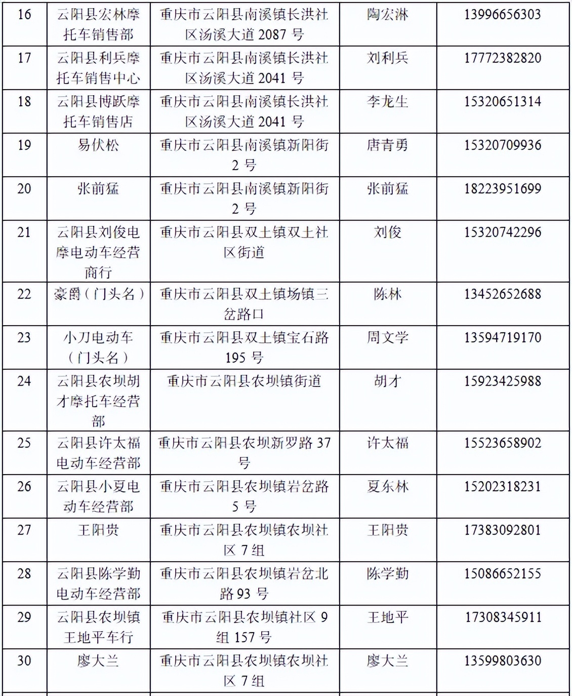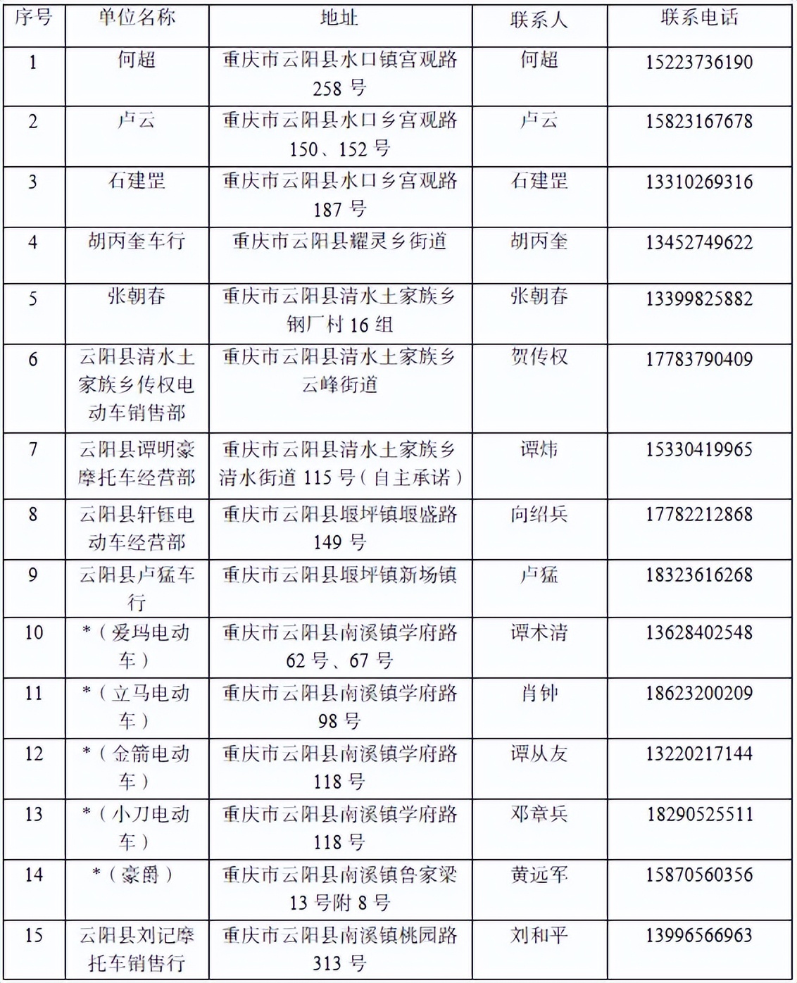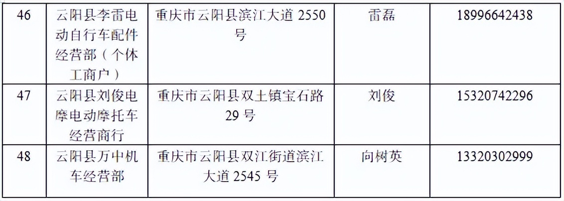 云阳县实施2024年电动自行车以旧换新补贴政策单位名单