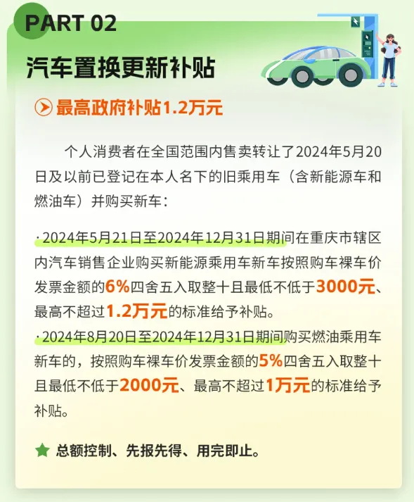 该项补贴政策从今年4月25日起一直执行到12月31日,符合补贴条件的对象可登录全国汽车流通信息管理系统网站或通过支付宝、抖音、微信、云闪付等平台搜索“汽车以旧换新”小程序,清晰、完整、准确主动填报,并提交申报材料。