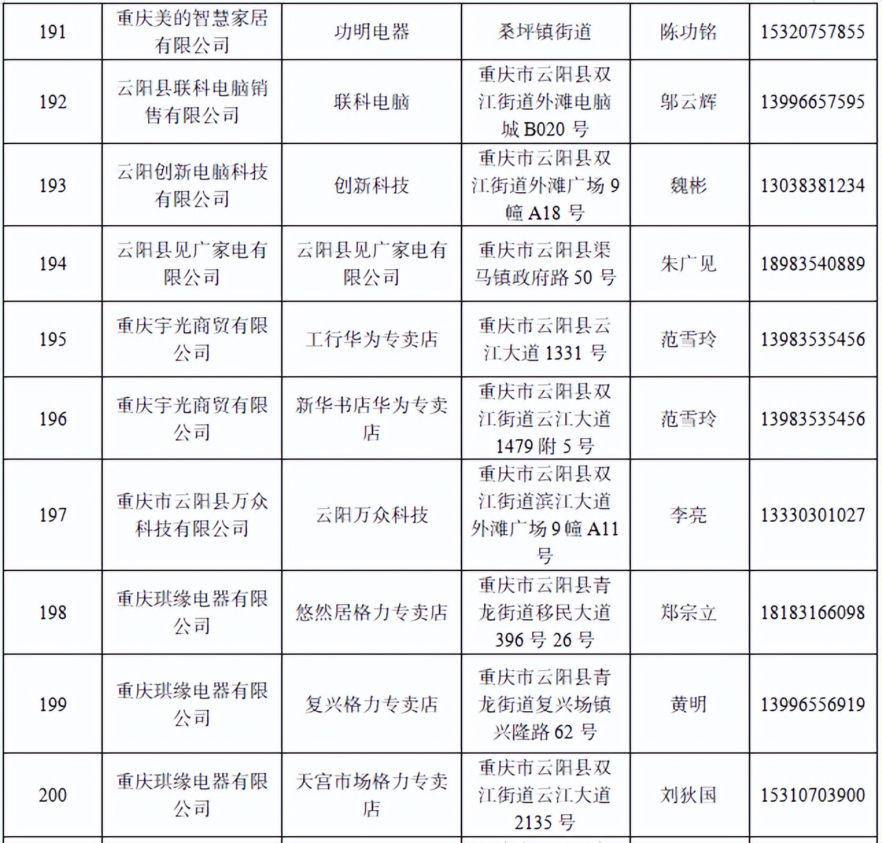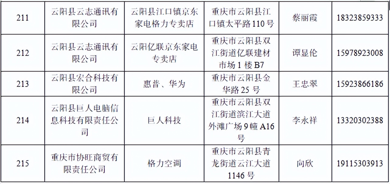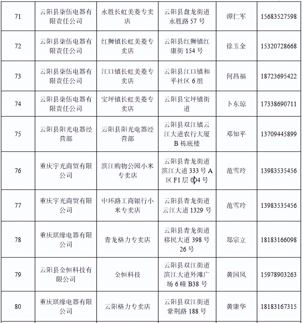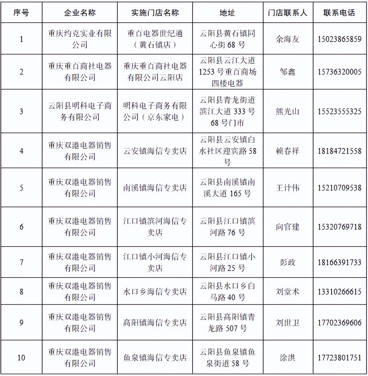 云阳县实施2024年绿色智能家电以旧换新补贴政策单位及门店名单