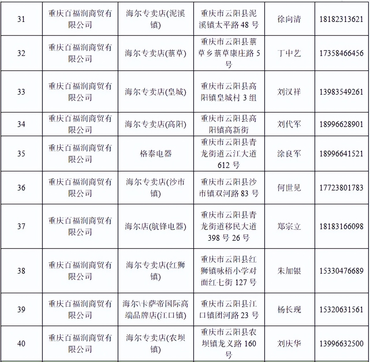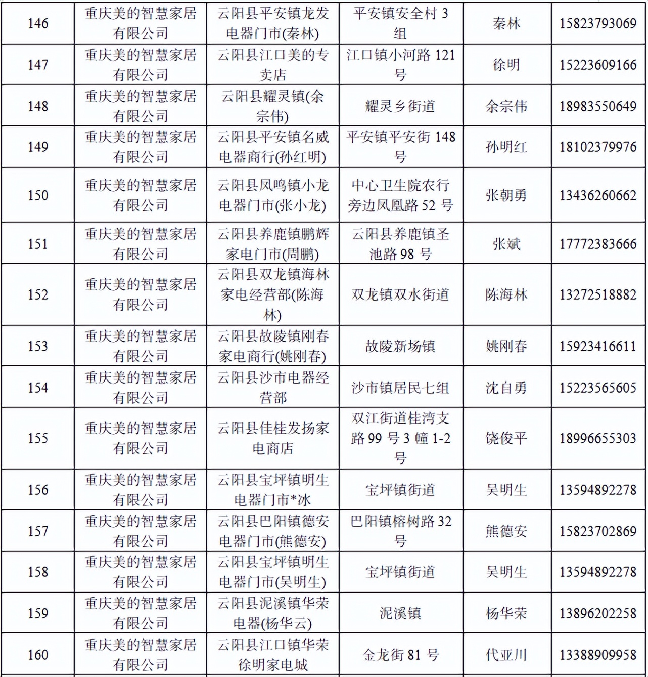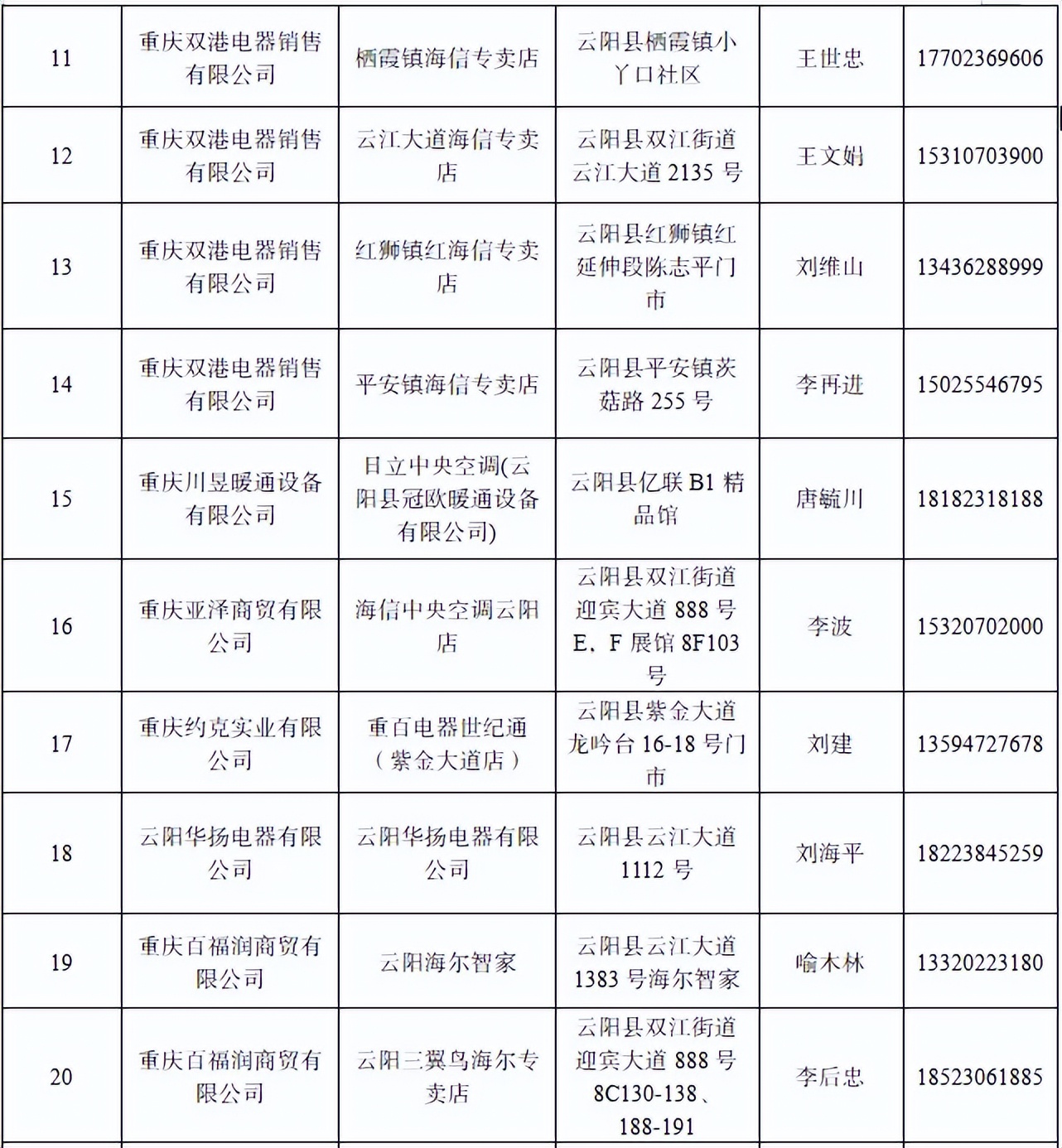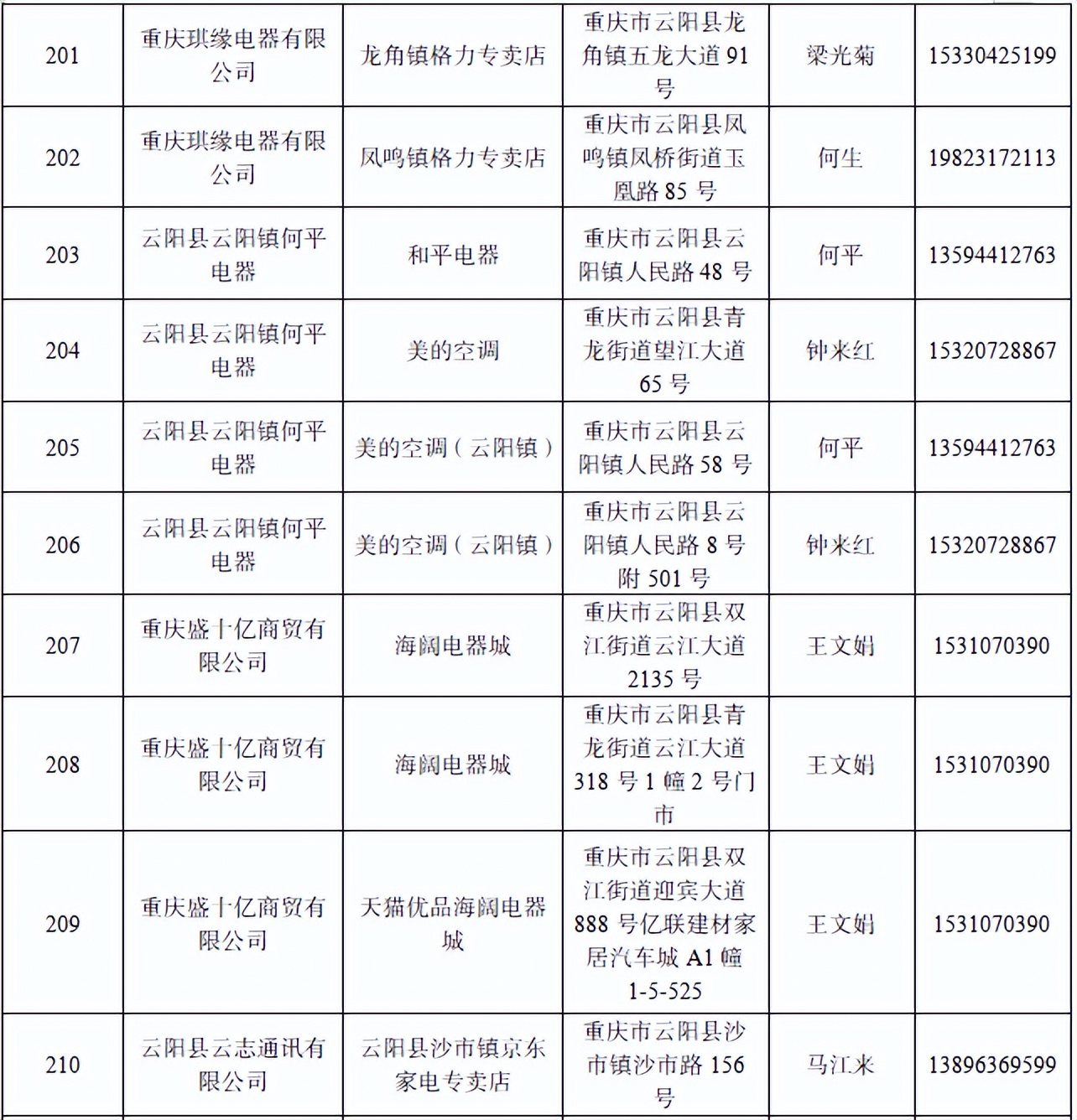 云阳县实施2024年绿色智能家电以旧换新补贴政策单位及门店名单