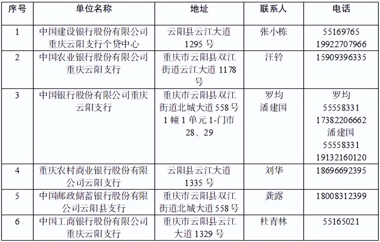 云阳县参与实施“2024家装消费品以旧换新贷款贴息”政策的银行业金融机构名单