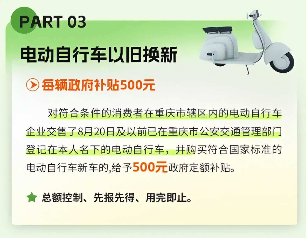 符合补贴条件的对象可关注“重庆商务委”微信公众号(点击“政民互动”栏目,选择“电动自行车补贴申报”菜单)、“爱尚重庆”微信公众号(点击“系列活动”栏目,选择“电动自行车补贴申报”菜单)进入重庆市电动自行车消费补贴政策网上申报系统,清晰、完整、准确主动填报提交申报所需材料。