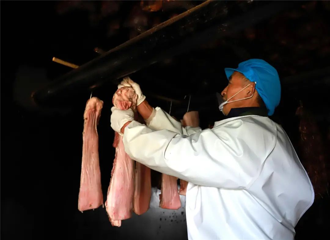 他们对生猪肉进行消毒处理、腌制、晾晒和熏制