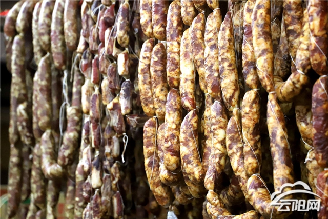 云阳网讯(记者 刘婷 吴迎花)随着气温逐步下降,香肠制作也进入了旺季。连日来,我县各大农贸市场以及肉铺也逐渐热闹起来,层层叠叠的香肠成为了一道独特的风景线。
