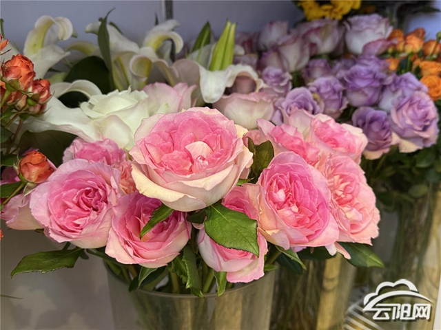 在另一家花店,店内摆放着各种类别的鲜花,品类有近30种。店主正忙着制作花束,她告诉记者,最近玫瑰、百合卖得比较多,很多人买回去装饰房间。