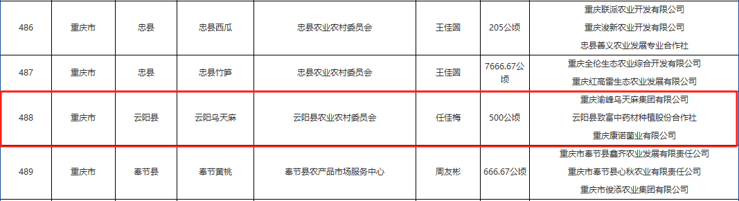 云阳乌天麻上榜