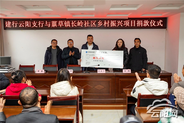 当日,建行云阳支行带着8万元支票来到蔈草镇长岭社区,捐赠给长岭社区的农业产业发展。