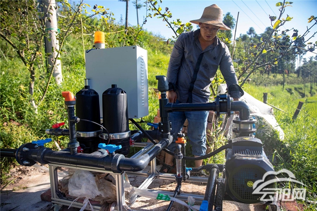 云阳网讯(记者 刘兴敏)“开关一打开,梨树林里形成一片水雾,解决了我们灌溉和打药靠人力背的大问题”,12月25日,蔈草镇长岭社区的梨园种植大户邓代锋拉着中国建行云阳支行的工作人员说:“今年干旱,建行捐资购买的机器设备帮了我们的大忙。”