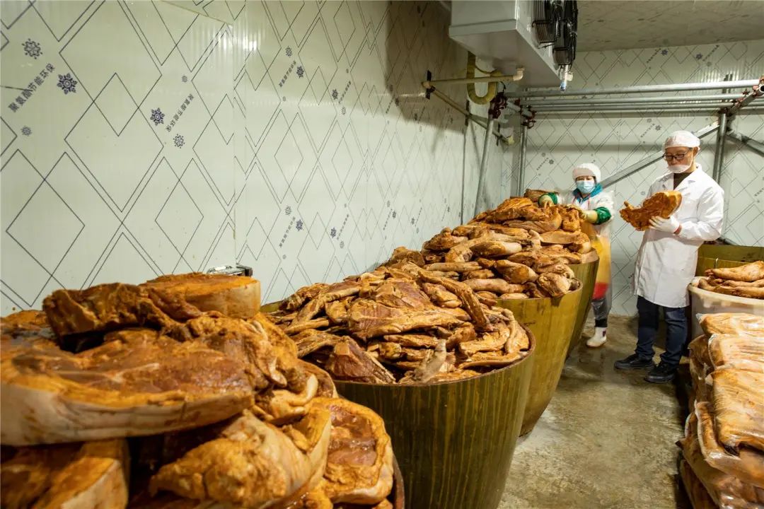 云阳县洞鹿乡青康腊肉加工厂内人声鼎沸