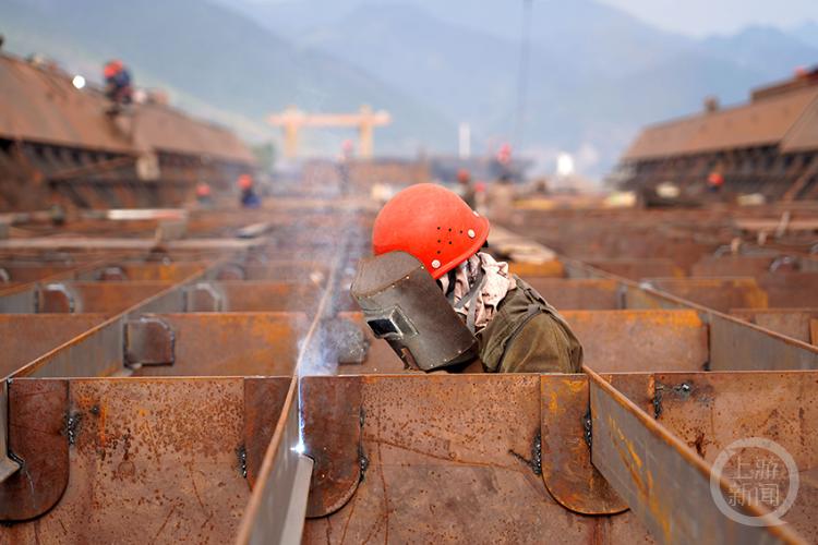 “江海直达船对焊接精度、装配工艺、材料验收等环节要求极高,仅打磨工序就需要4名专业技工全程跟进。我们也引进了专业技术人才和设备,全力以赴完成订单。”渝鑫船务有限责任公司副总经理叶平说道。