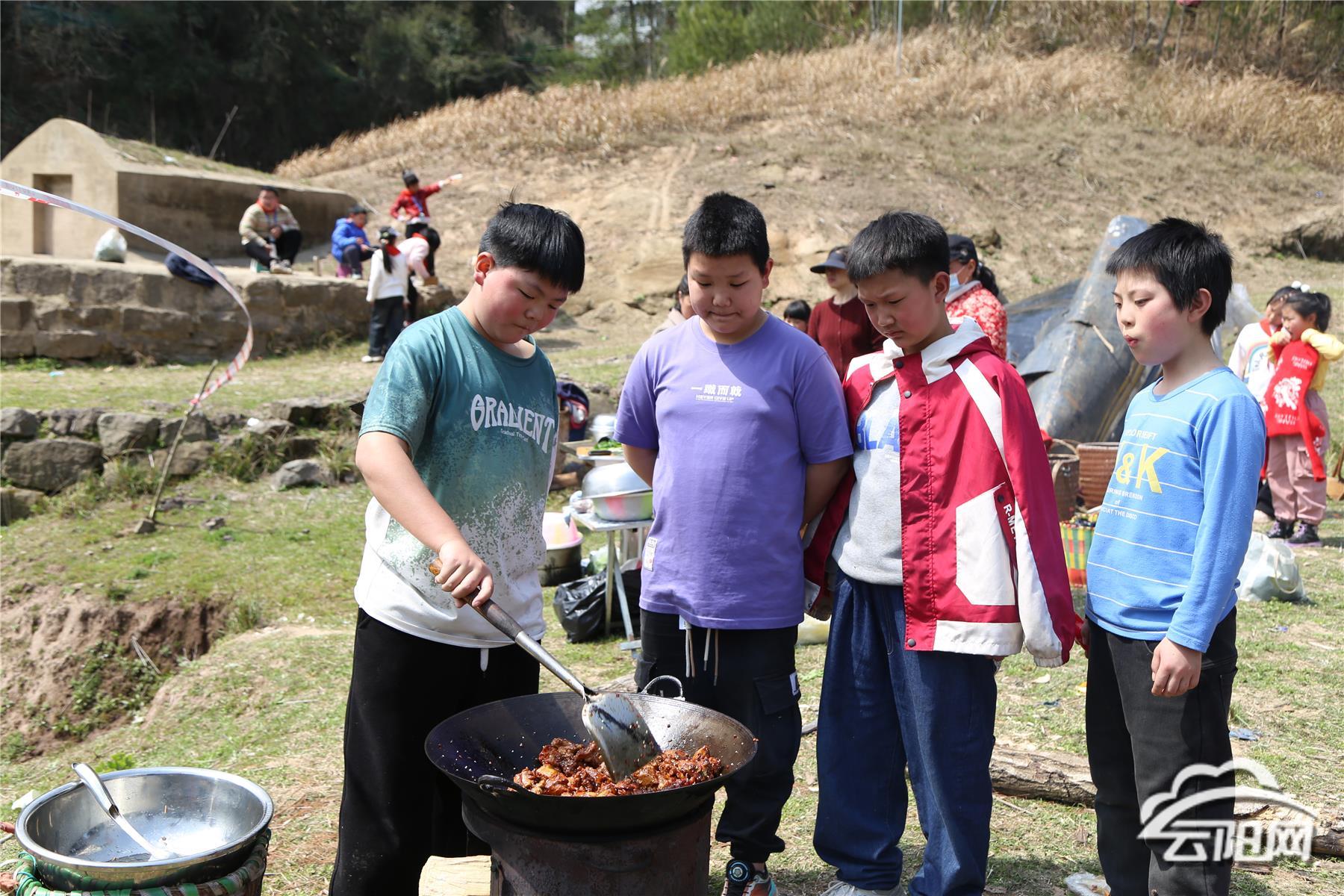 当天,不少学生身背背篓,手提食物,排着整齐的队伍,徒步前往活动场地。一路上,教师们化身“行走的百科全书”,引导学生细致观察自然景观。破土而出的新芽、潺潺流动的溪水,都成为知识的载体,自然知识与人文历史在轻松的氛围中融入学生们的心田。学生们不时发出阵阵惊叹,欢笑声、讨论声交织在一起。