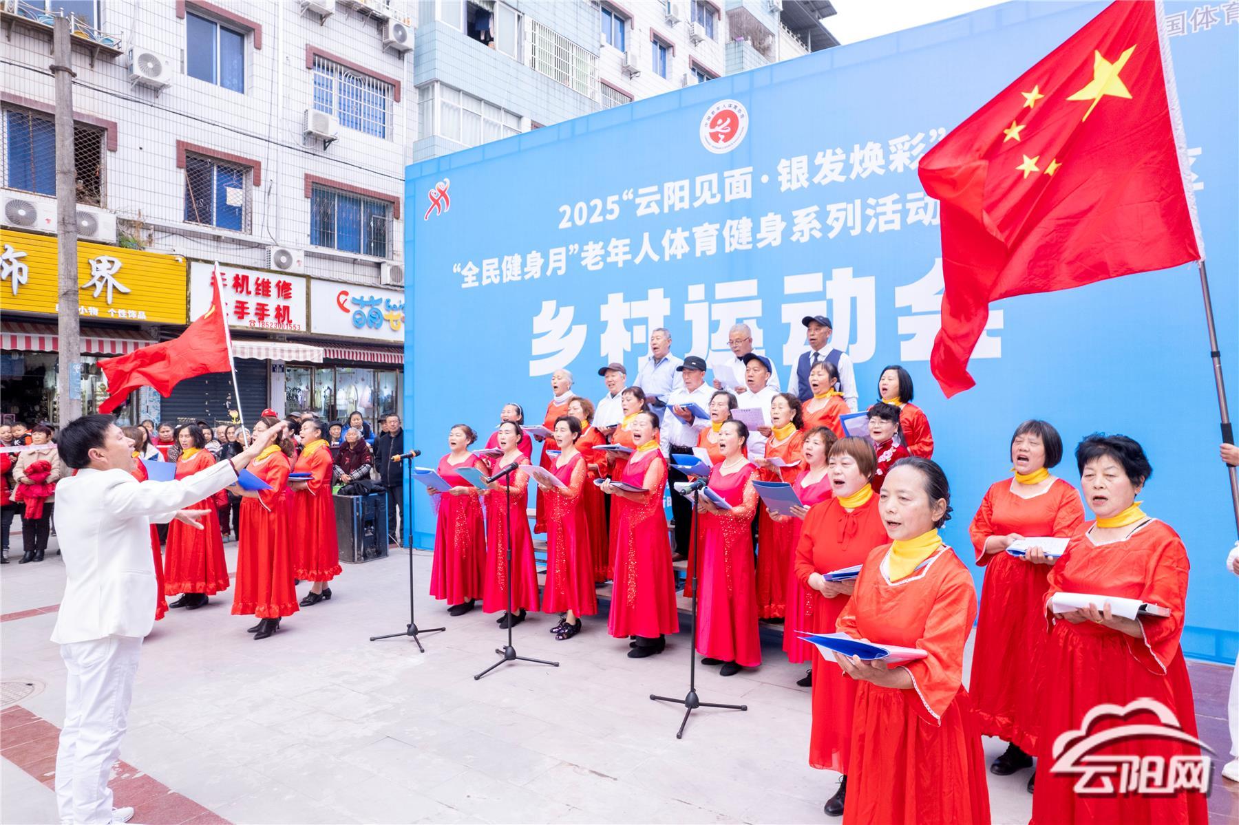 伴随着欢快的音乐节奏,运动会以一场精彩纷呈的文体展演拉开序幕。各村(社区)选送的彩扇舞《五星红旗》、连宵《丰收中国》、四步拉花《龙船调》等特色节目轮番登场,最后齐唱《歌唱祖国》《走在大路上》将气氛推向高潮。参演老人们精神矍铄的神态、到位的动作,赢得观众阵阵喝彩。