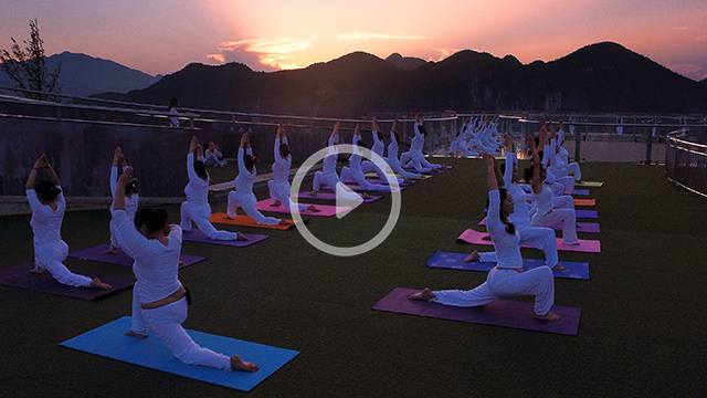 瑜伽爱好者齐聚云端廊桥 上演空中瑜伽秀