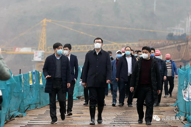 在水口云雾迷蒙的大山之中,载重车辆忙个不停,工人正在紧张作业,整个工地热火朝天,建设场面给人震撼。“员工到位多少?防疫措施怎么落实?复工复产遇到哪些困难?”当天,覃昌德一行沿着山路来到施工现场,深入建设工地,详细了解疫情防控举措和复工复产情况。施工单位负责人说,目前,公司隔离人员已全部解除隔离,复工复产正在有计划推进,项目工程已经顺利开工。“一步先,步步先,越早越主动!”覃昌德与工人们亲切交谈,对大家的辛勤付出表示感谢,并一再叮嘱大家要做好防控工作,注意施工安全,保护好自己;希望施工单位要抢时间、赶工期,把延误了的时间都抢回来,把疫情带来的损失都补回来;要求相关部门加强调度、统筹协调,多为企业排忧解难,不折不扣完成目标任务。