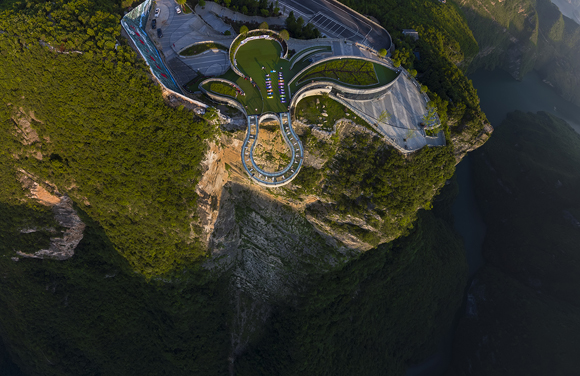 俯瞰云阳龙缸云端廊桥。云阳县委宣传部供图 华龙网发