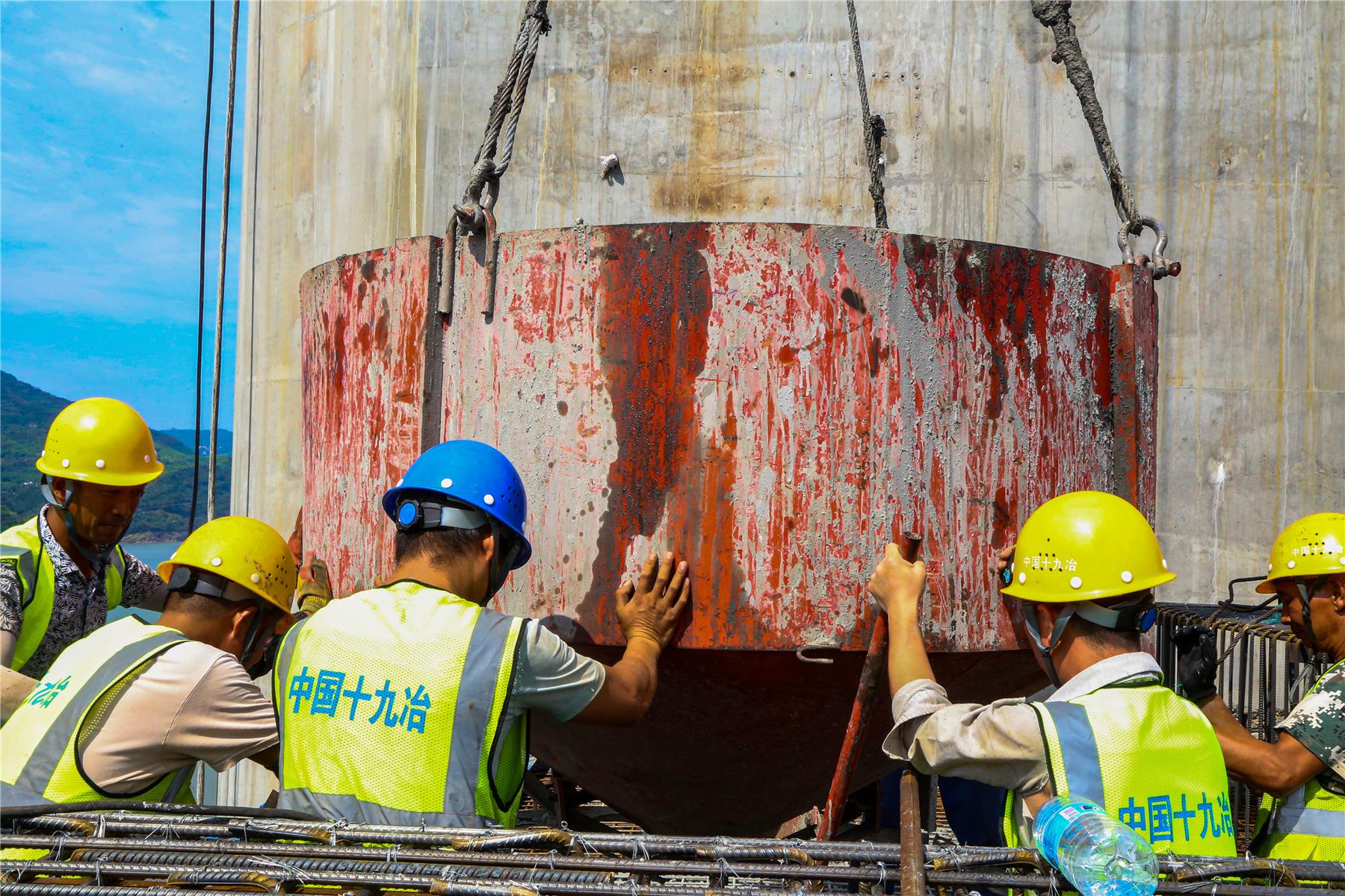 “下横梁位于主塔70米高的位置,采用泵送加料斗吊运方式输送混凝土。于7月12日完成第一次浇筑675方,8月16日完成浇筑452方。”江龙高速第二合同段项目部生产经理刘俊辰介绍。