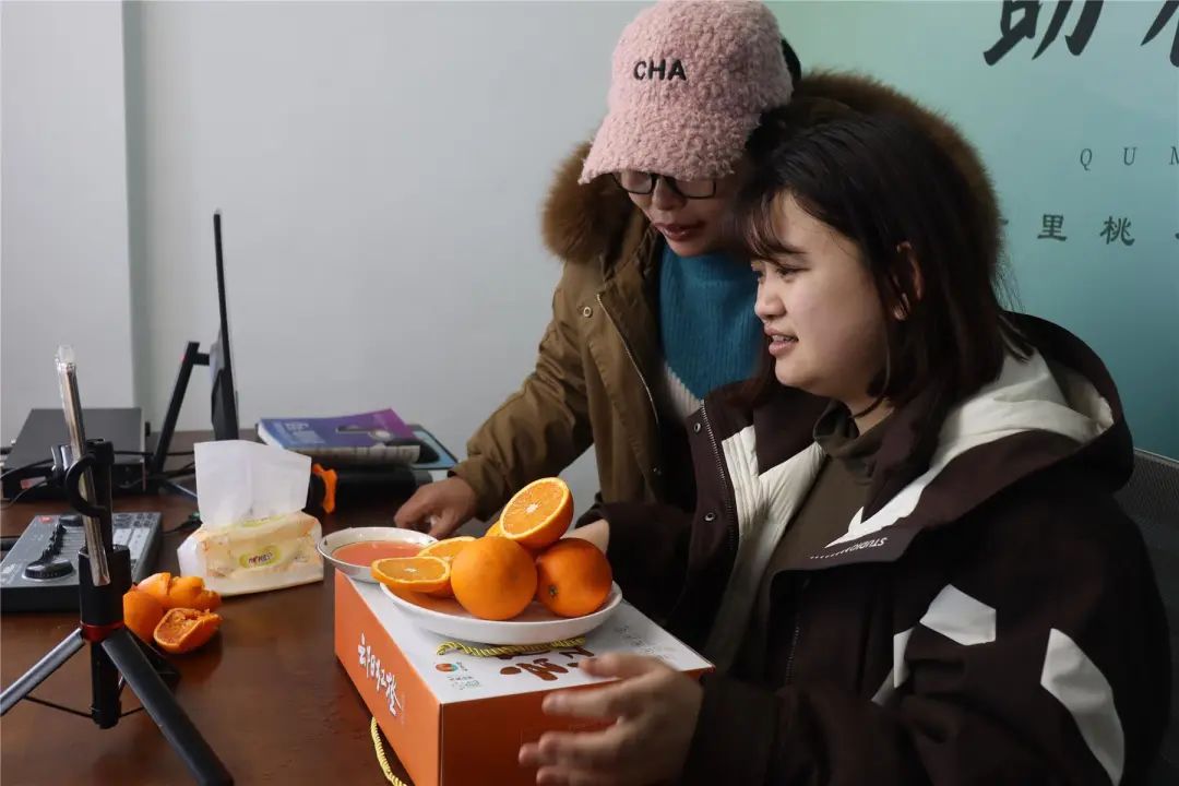 “你切的方法不对,要横着切橙子,这样产品看起来更漂亮。”在渠马镇电商直播中心,有着40多万粉丝的电商达人范小芳正手把手教新手主播李维电商直播知识。“家乡的电商产业发展得越来越好,大家都凭借电商挣到了钱,我也想来试一试。”李维信心满满地说道。