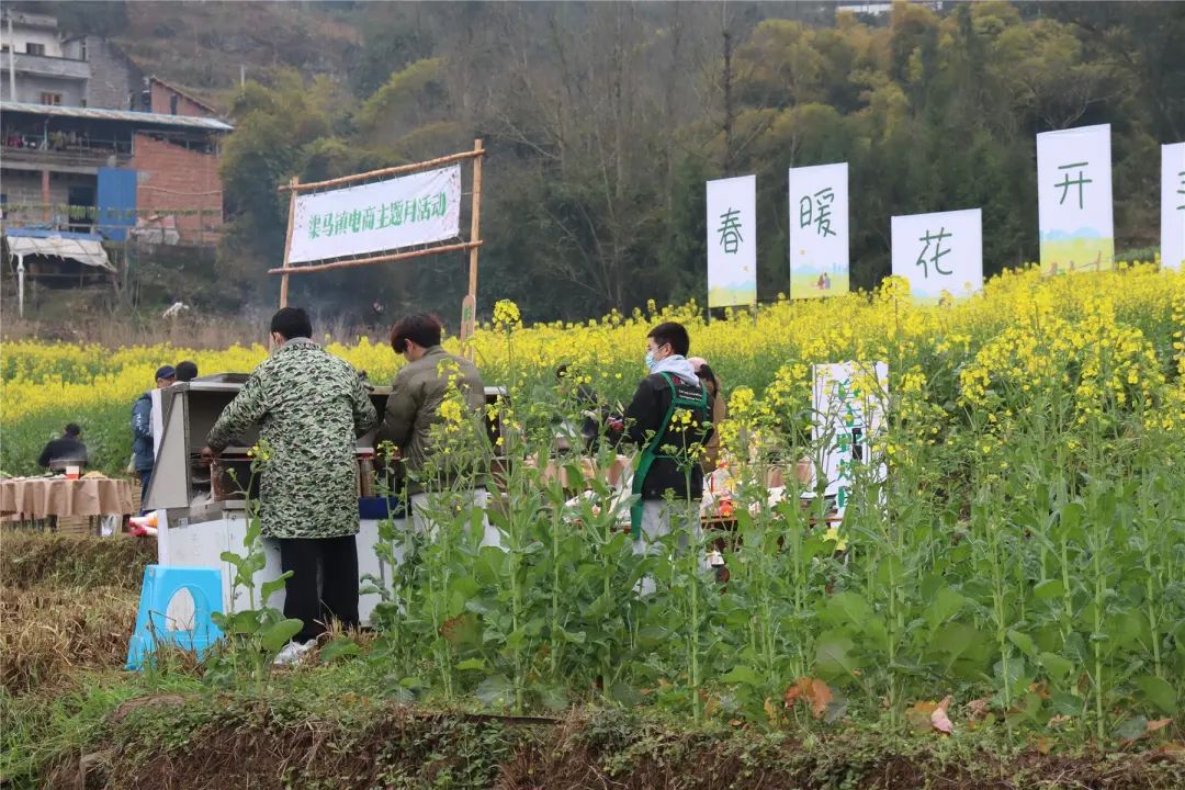 日前,在渠马镇将军梁社区,一场别开生面的电商月主题会召开。春暖花开,田间地头四处洋溢着春天的气息,油菜花大片大片在田间绽放,好似给大地披上一件金黄的地毯。村民们在户外搭上了灶台,支起了餐桌,大家聚在一起吃饺子、赏民俗表演、玩趣味小游戏,在油菜花海里迎接春天的到来。
