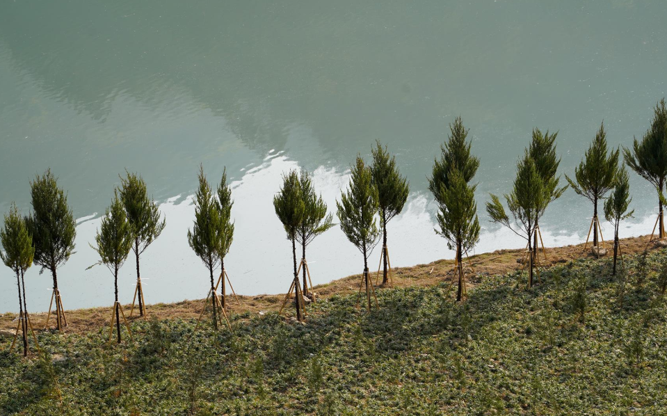 新栽种的树木郁郁葱葱