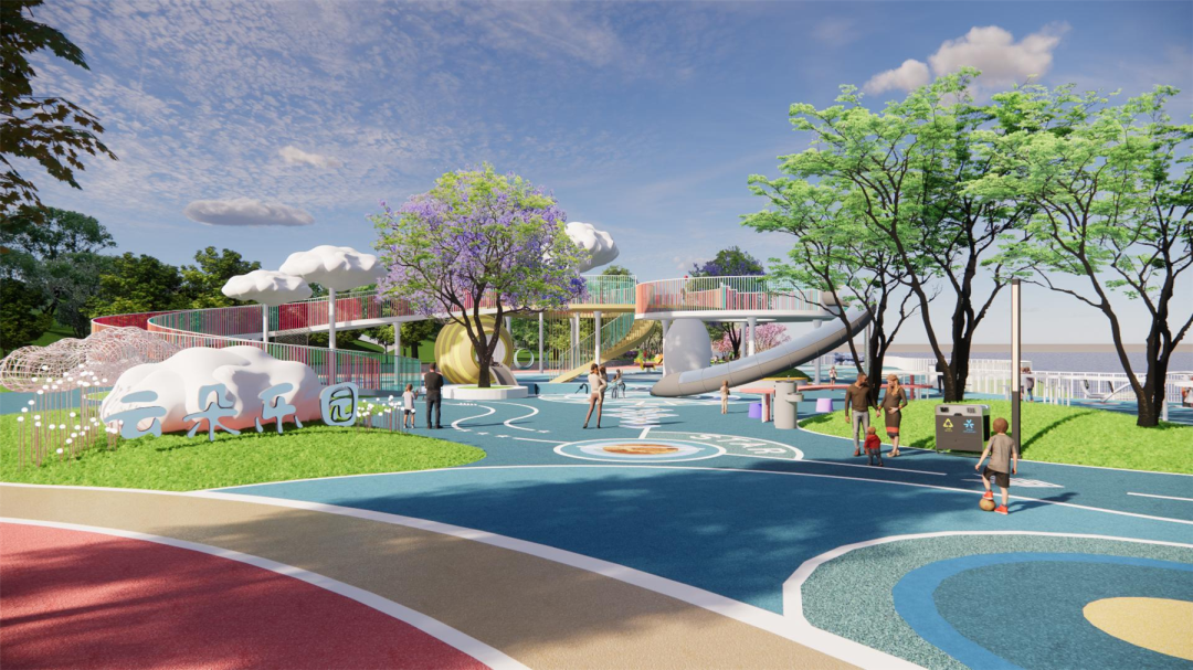 沙坑滑道、蹦床、“兴云兔”打卡点等